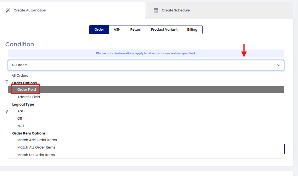 On the first dropdown, select "Order Field"