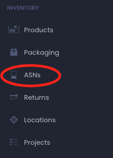 - Log into Kase and click the "ASNs" tab under 'Inventory'.