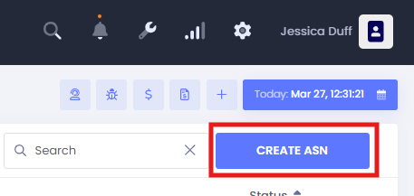 - Click 'Create Packaging ASN' in the upper-right corner.