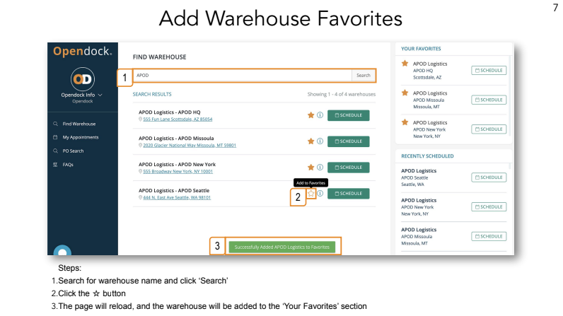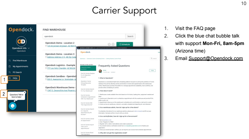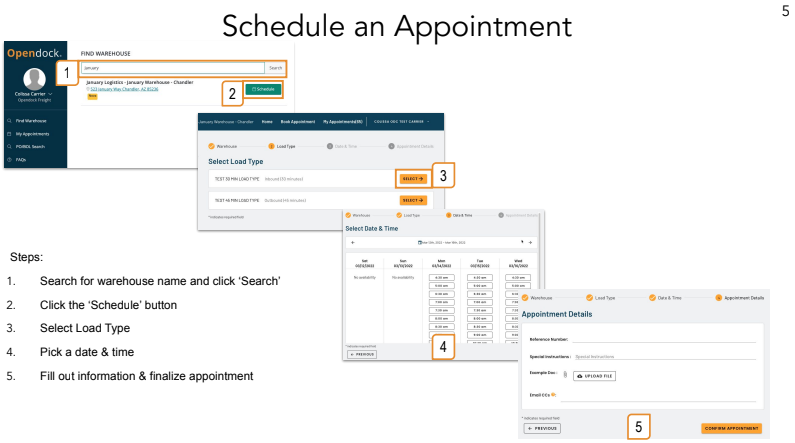 - Scheduling Instructions: Opendock (See instructions for Open Dock below)
