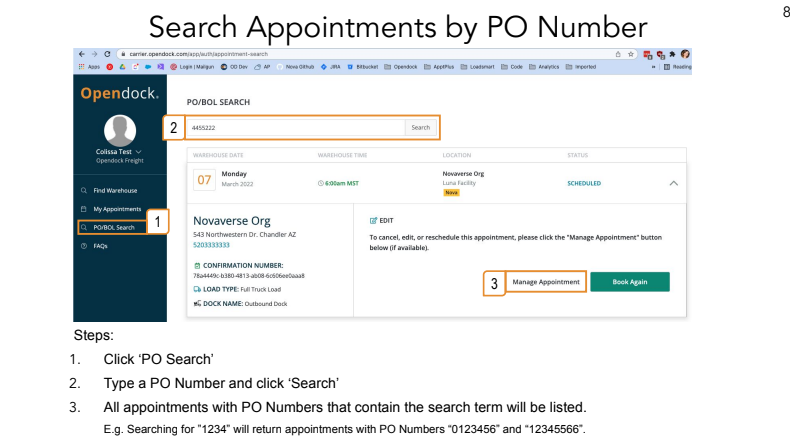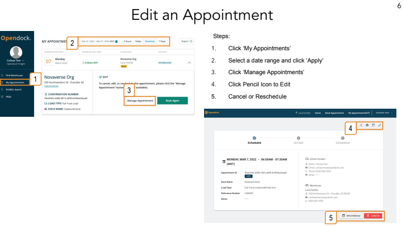 How to schedule appointments in Open Dock (For Sauk, Sunnyvale, and Appleton warehouses)