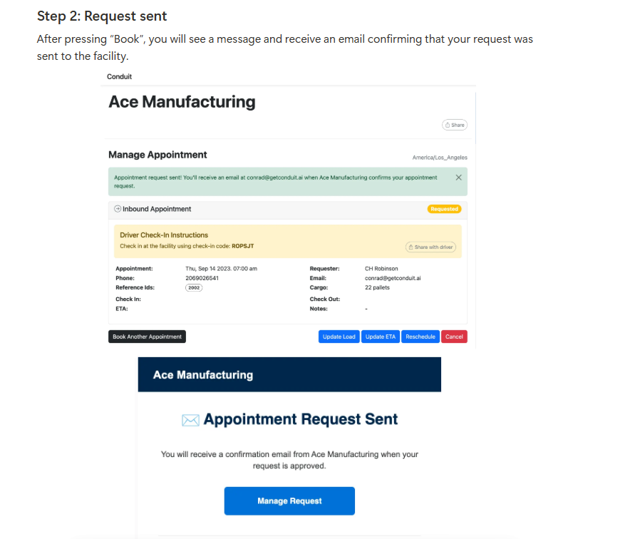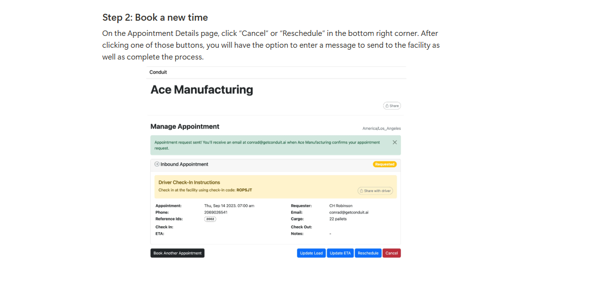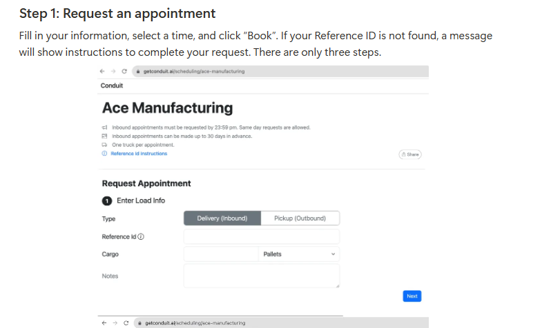 How to schedule appointments in Conduit (For Fontana & Columbus warehouses)