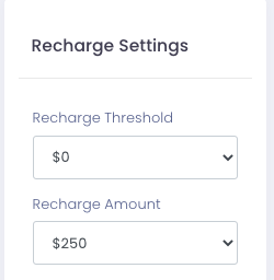 Note: We generally recommend increasing both the threshold and recharge amount to avoid multiple charges per day. The more you ship, the higher you’ll want to make both numbers. A good starting point is $1000 for the recharge amount and $250 for the Recharge Threshold.