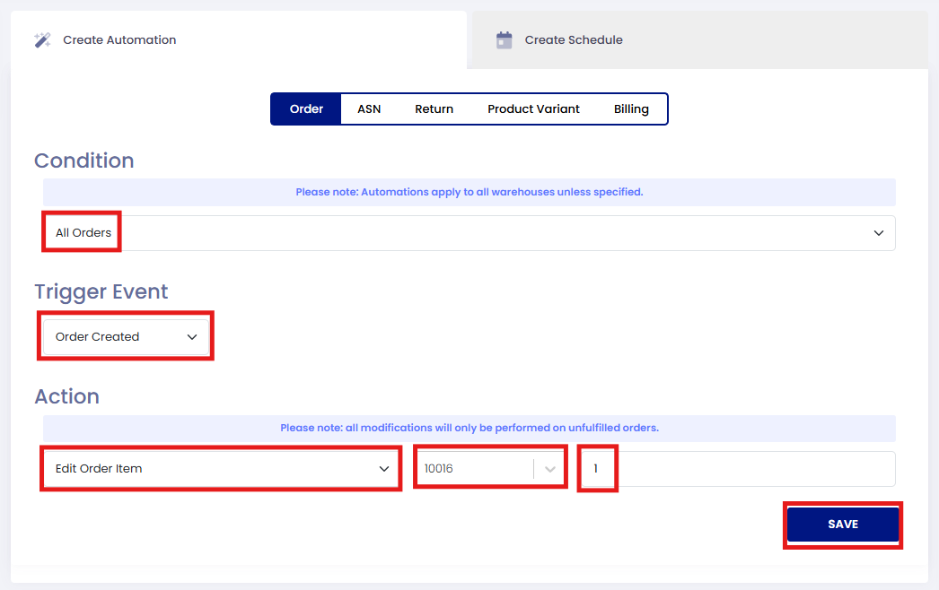 If you’d like to automatically include a promotional item, insert, or gift with every order placed, our automation tool makes it quick and easy. Follow the steps below to set up an automation that will add a specific SKU to each order as soon as it’s created.