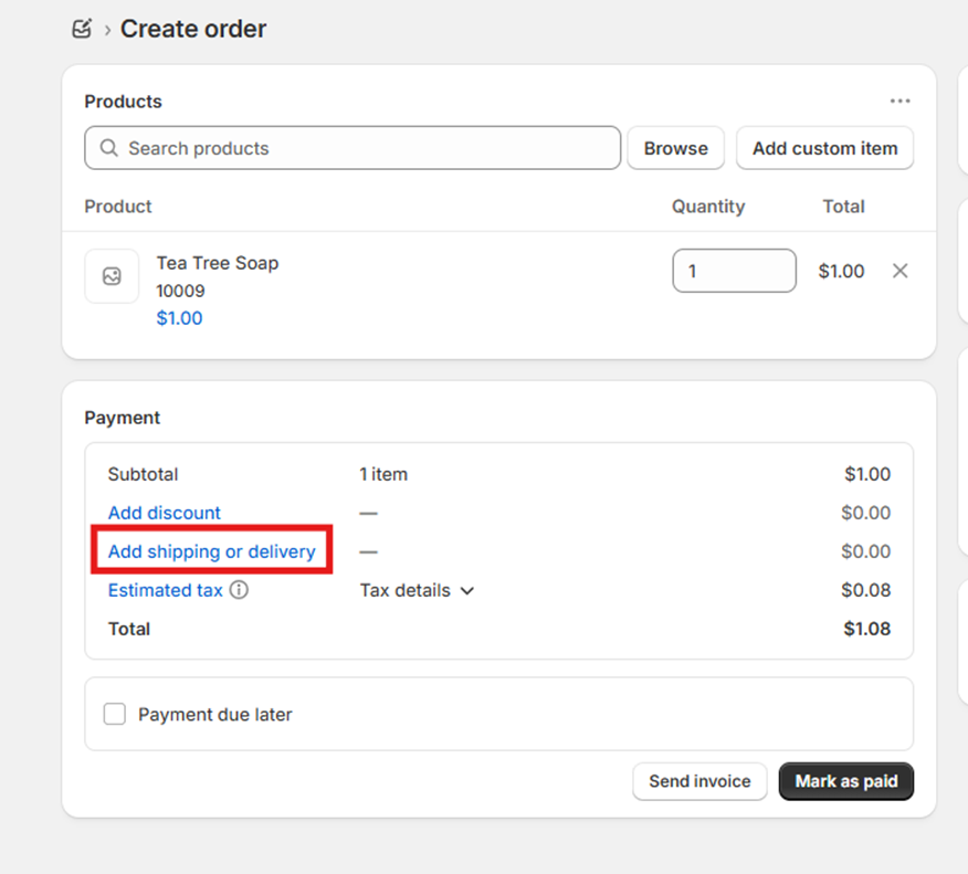 Click “Add shipping or delivery” to select the shipping method.