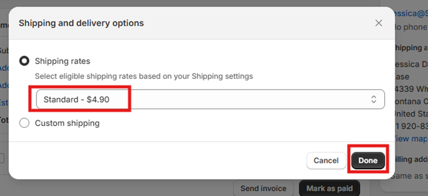 Select a shipping method from the dropdown and click “Done.”