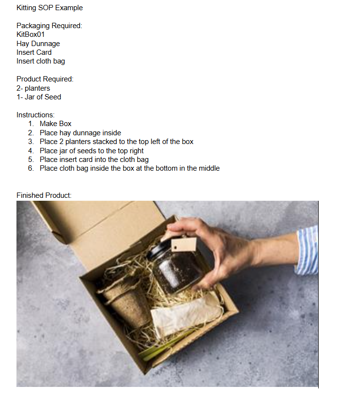 For clients requesting kitting services, please provide a detailed kitting SOP that includes: