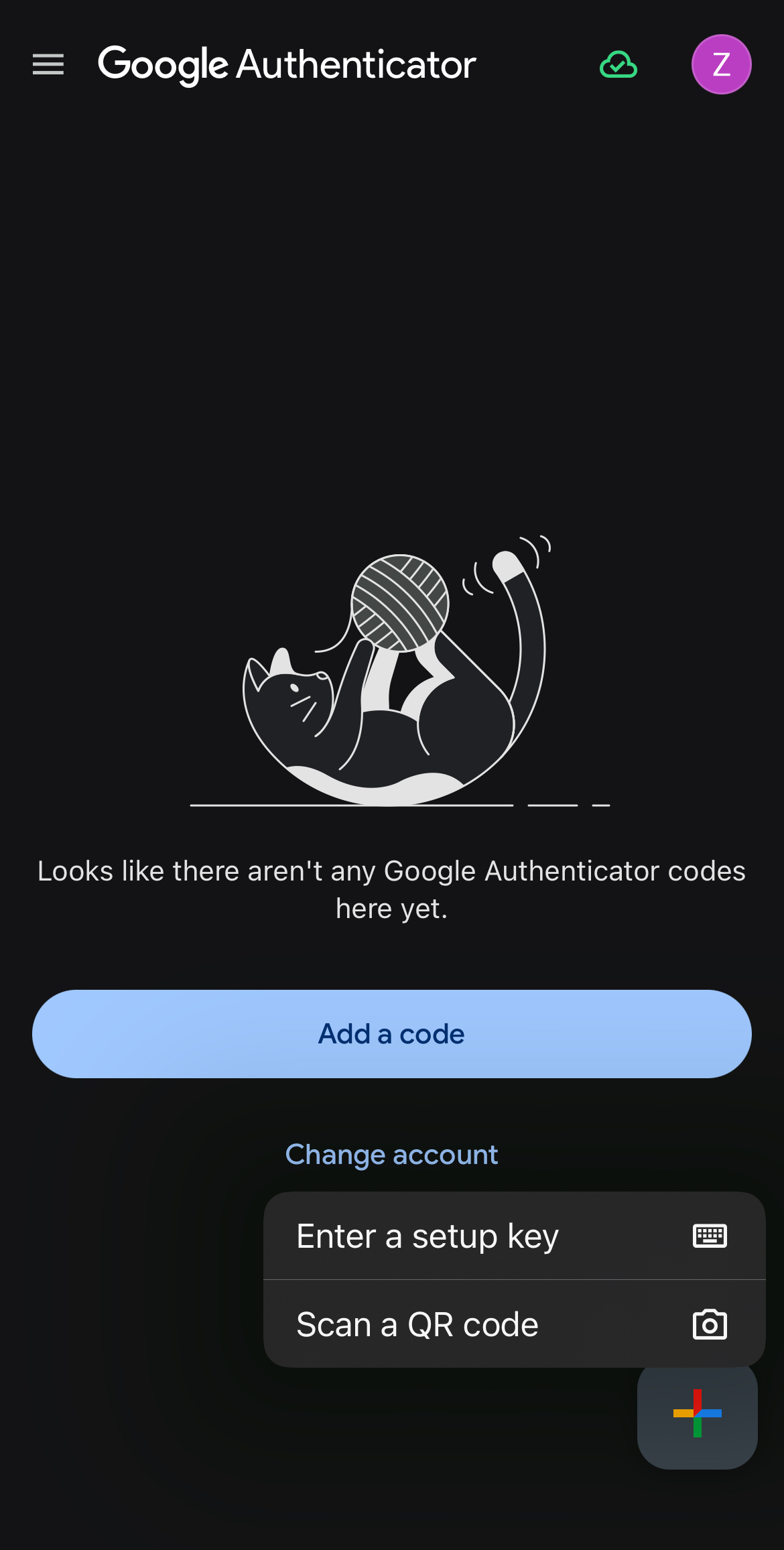 Open Google Authenticator and click the + button in the bottom right corner. Then select Scan a QR code on the next page (additionally, you can click Add a code).