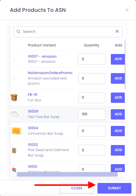 Next, you’ll want to add the items that you’ll be sending us. You only need to create one ASN per shipment (not one ASN per box).