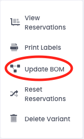 Inside the product page, select ‘Update BOM’ from the box near the left hand rail