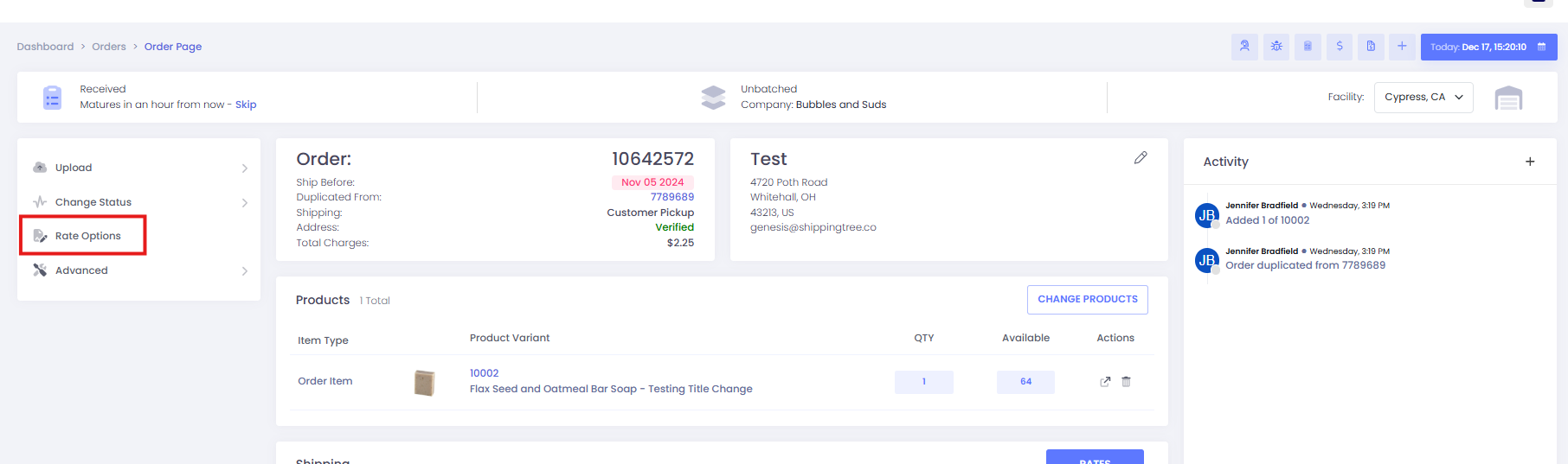 - To select that an order be insured beyond $100, select the order number in Kase, and then select ‘rate options’ in the box near the left rail