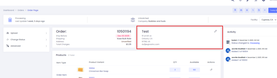 Shipping addresses can be edited directly within the Kase app as long as the shipping label has not yet been processed. Once a label has been created, the address is locked and cannot be changed within the app.