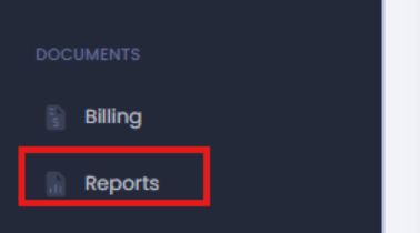 - Selecting Reports from the left-hand navigation Menu