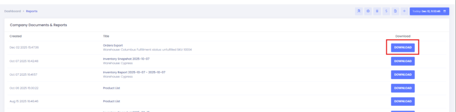 - Lot Number Export – Includes lot-controlled inventory details (if applicable)