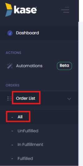 - From the left-hand navigation menu, select Order List.