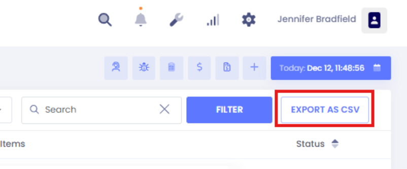 - Select Export as CSV from the Orders page.