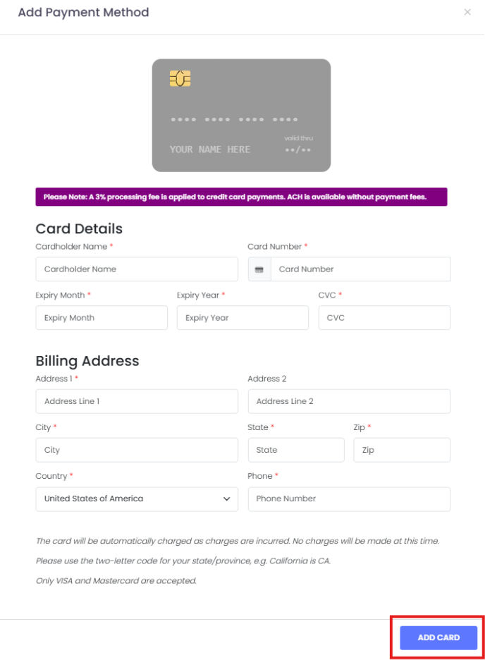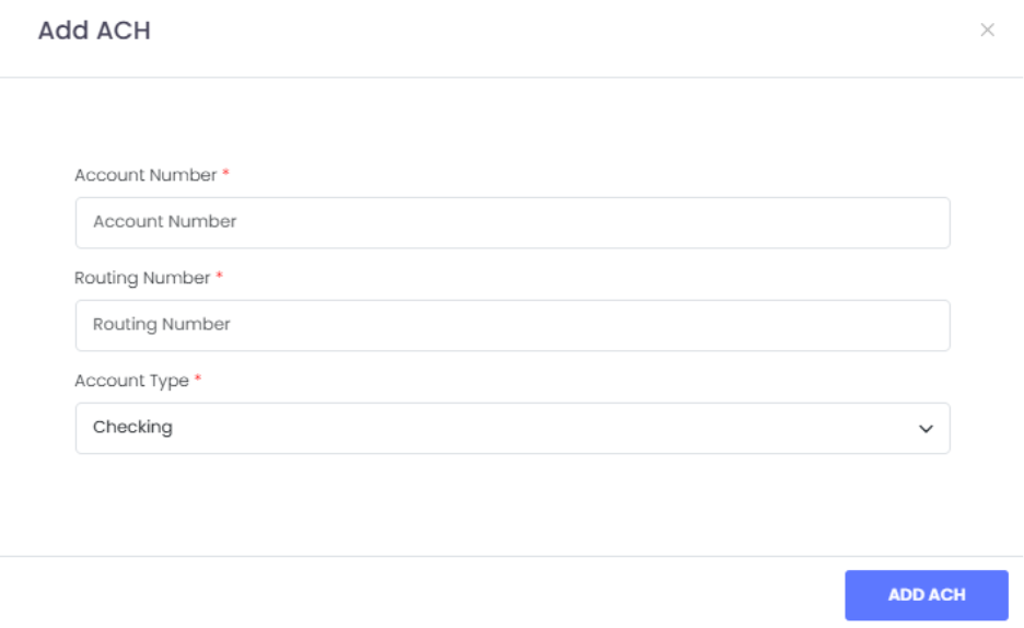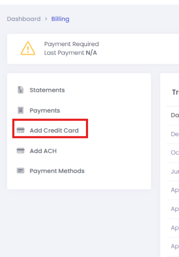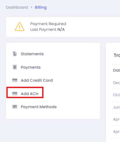 If you prefer not to use a credit card, you can add an ACH payment method.