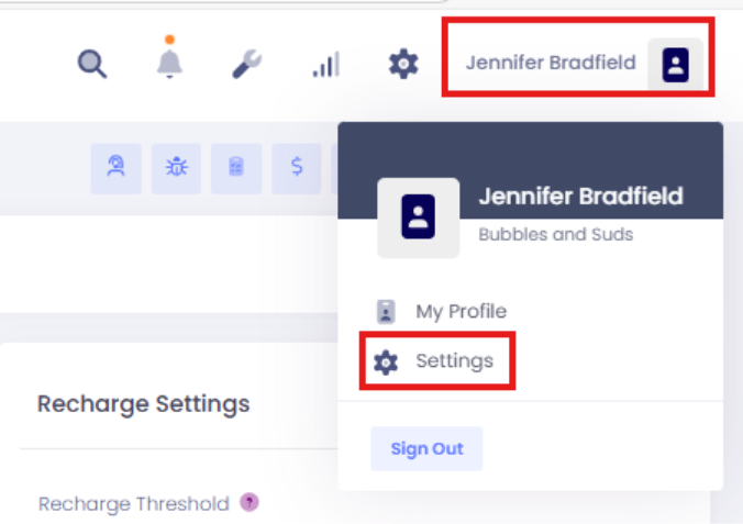 The Recharge Settings section controls how your account balance is automatically replenished.