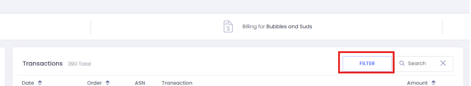 The Transactions section shows live, real-time charges as activity occurs in the warehouse.